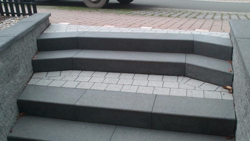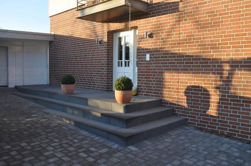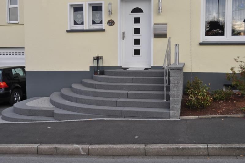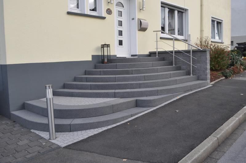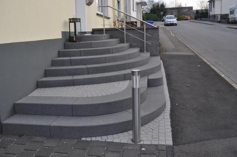 - Granit: Granit als Material für Außentreppen zeichnet sich vor allem durch eine besondere Beständigkeit und Robustheit aus. Weitere Vorteile von Granit sind Rutschfestigkeit, Pflegeleichtigkeit und eine Vielzahl an unterschiedlichen Gestaltungsmöglichkeiten.