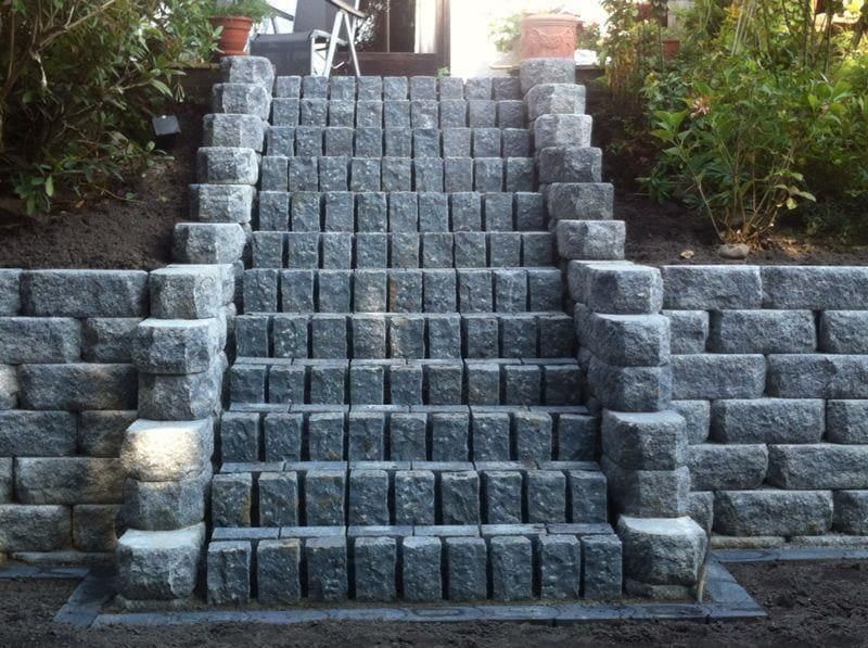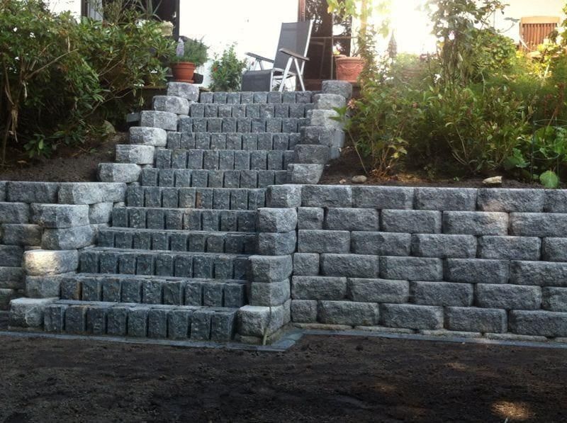 Das Fundament für die Blockstufen ist stufenweise aufzubauen und kann aus z.B. Beton gegossen werden.