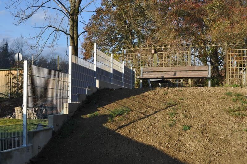 • Schallschutzzaun: Dies sind Lärmschutzsysteme die Schallwellen reflektieren oder absorbieren. Somit sorgen sie dafür, dass wo Menschen arbeiten, einkaufen, wohnen und ihre Freizeit genießen, Ruhe herrscht. Es gibt sie aus Holz, Metall, Beton, mit Begrünung, Gabionen und Kunststoff.